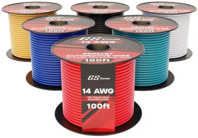 Primary automotive wire assortment: 14 AWG wire x 6 rolls, 14Ga wire in 100 ft spool total of 600ft. This electrical wire comes conveniently in spool rolls. Speaker wire 14 gauge.