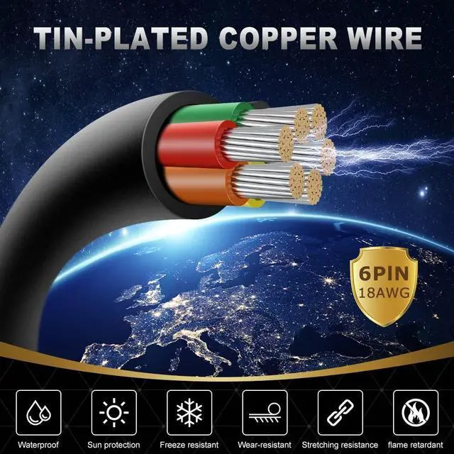 Durable Material: The 18 gauge 6 wire cable has an even thickness PVC bush to protect the cord from fraying. It has the characteristics of flame retardant, safety and stability, anti-aging, acid and alkali resistance, moisture resistance and so on. The copper core have a high melting point and is not easy to melt. It can be buried directly or exposed to the sun for a long time