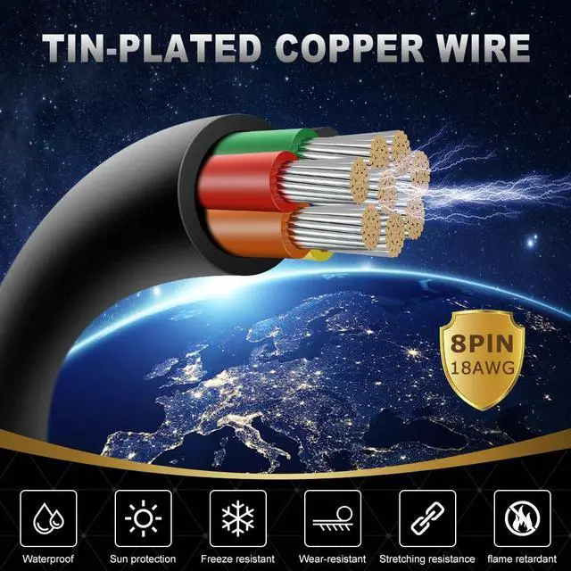 Durable Material: The 18 gauge 8 wire cable has an even thickness PVC bush to protect the cord from fraying. It has the characteristics of flame retardant, safety and stability, anti-aging, acid and alkali resistance, moisture resistance and so on. The copper core have a high melting point and is not easy to melt. It can be buried directly or exposed to the sun for a long time