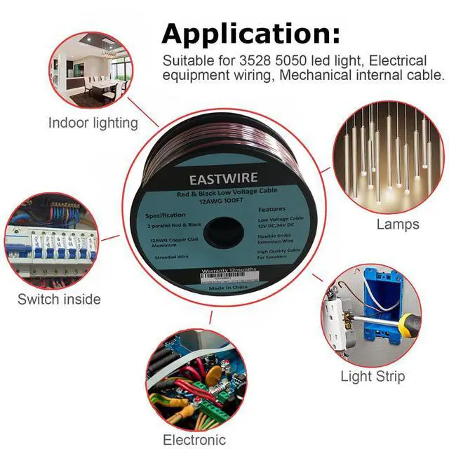 [Wide Application] The wire is widely used for various DC electrical hookups, all single color LED strip lights, low voltage cables, low-loss in-home or car stereo installs and great for in-home applications as well as automotive, schools, churches, auditoriums or business settings.