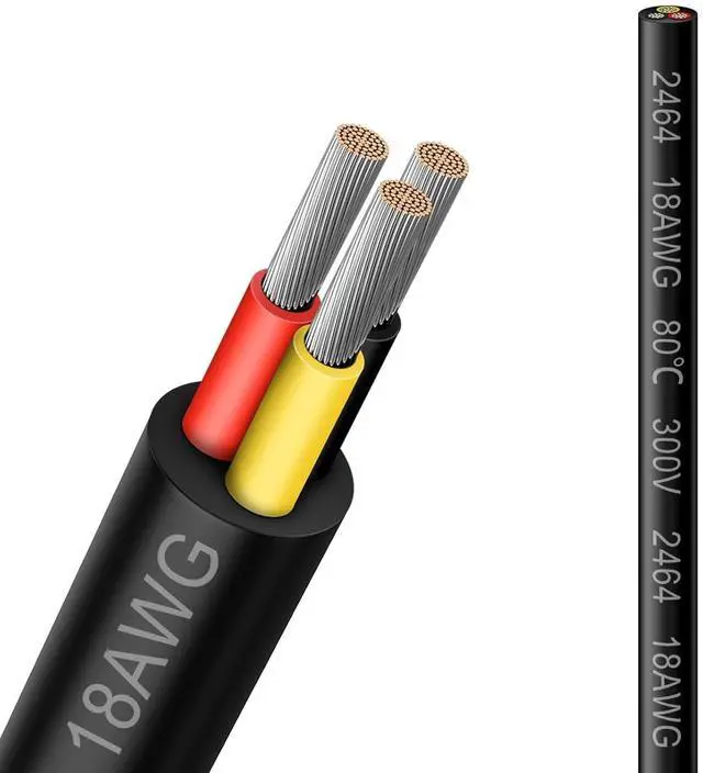 3 Conductor Tinned Copper Wire: 18 awg 3 wire cable have 41 strands of 0.16 mm tinned copper wire inside each cable. The tin coating not only enhances the conductivity, but also provides excellent corrosion and oxidation resistance, Compared with ordinary copper wire, it can greatly extend the service life of the power cable. It is also more suitable for soldering