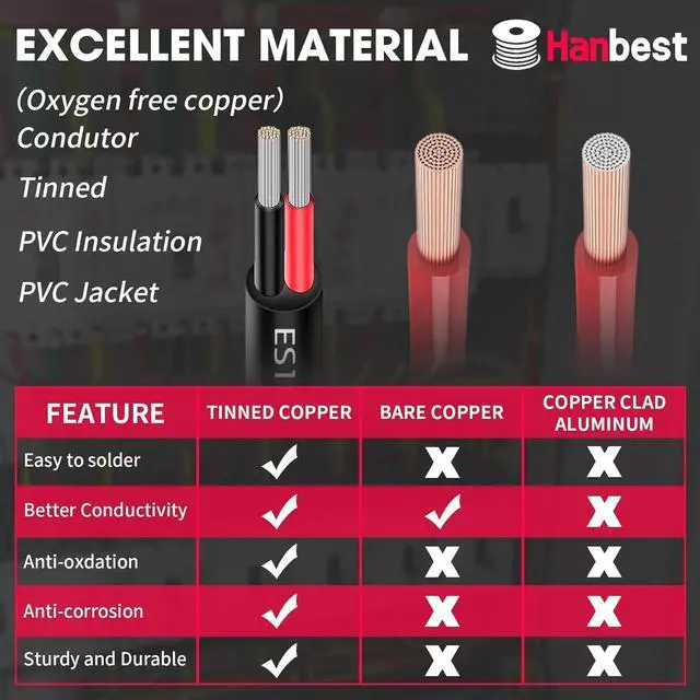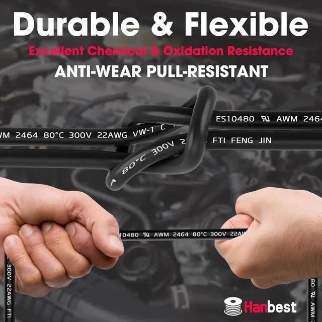 : This wire is rated IP68 for waterproofing and can handle voltages up to 600V, withstanding extreme temperatures from -40°F to 248°F. Its flame-retardant grade of V-1 provides an extra layer of safety, ensuring reliable use in various environments. This makes the Hanbest 18 gauge wire perfect for use as marine wire 18 gauge or any other demanding application