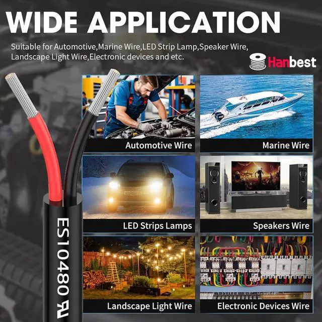 Wide Application Range: Suitable for numerous low voltage applications, Hanbest 18 gauge wire can be used as speaker wire, LED light power cords, indoor light cables, automotive wires, landscape light wires, and marine wires, making it a versatile choice for both residential and commercial uses. This wide application range ensures that whether you need 12v wire or general 18 gauge wire