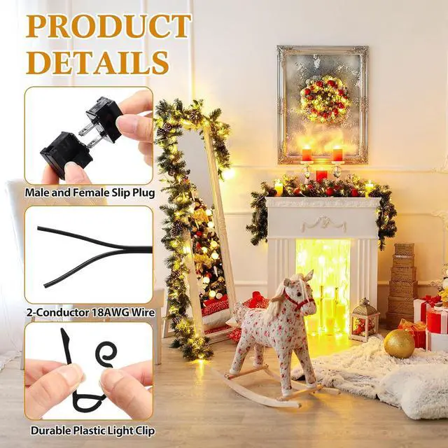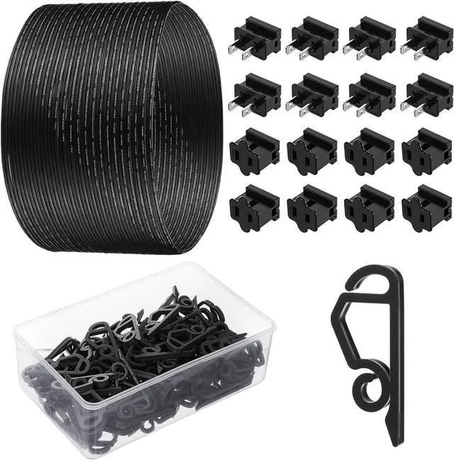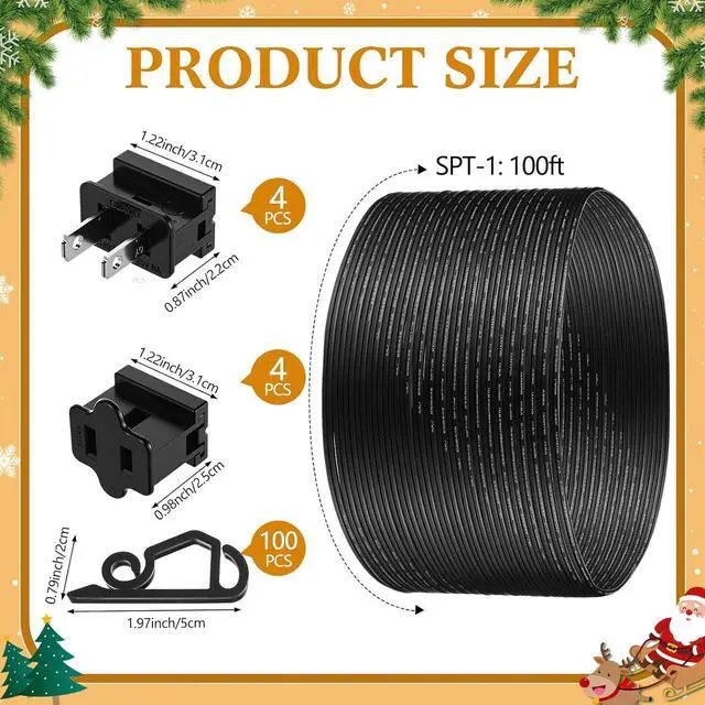Complete Holiday Solution: the essential Christmas set includes everything you need for festive lighting: 1 pc 100ft SPT-1 electrical wire, 100 pcs light clips, and 16 pcs slip plugs (8 male and 8 female), making it suitable for indoor and outdoor light decorations