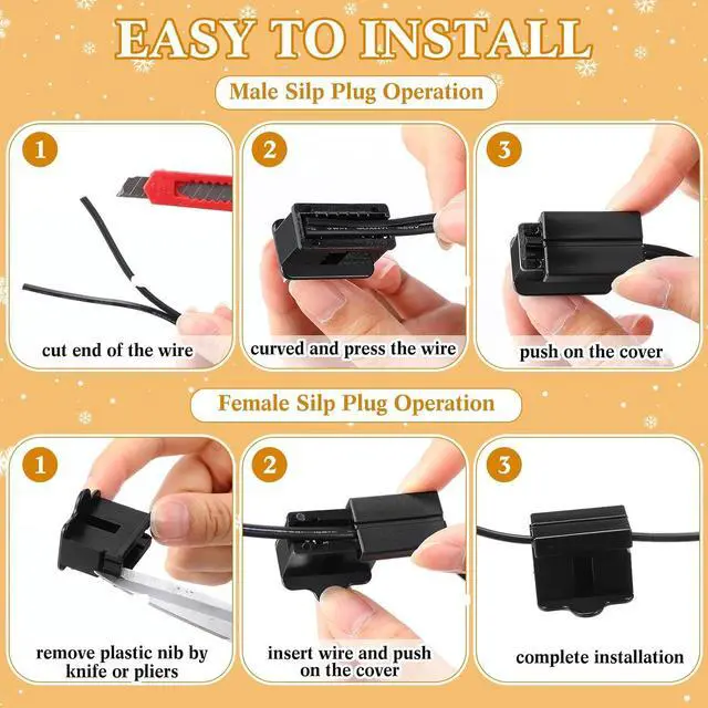 Reliable Slip Plugs: the electrical wire features quality plastic and metal slip plugs, designed for easy installation and safe operation at 120 volts, ensuring your holiday lights function flawlessly