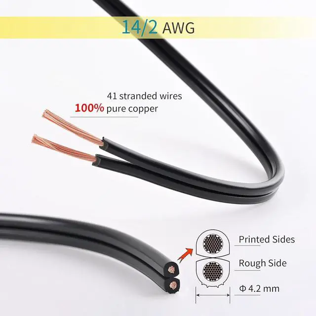 SPECIFICATION & SIZE: 14 gauge low voltage wire, 100 feet of copper wire, black, Maximum