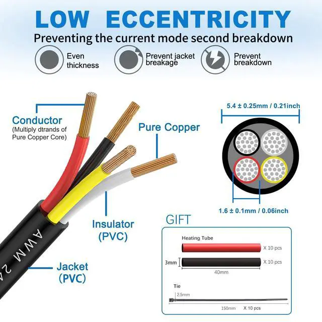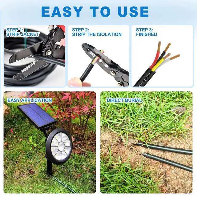 Widely used17 strands of 0.16 mm OFC copper wire are inside each cable - Highly efficient - Super low impedance for a highly efficient connection, suitable for low voltage outdoorlighting systemsautomotive applicationshousehold circuit systems and other daily environmentssuch as led lamps strip outdoor speaker automotive landscape lighting marine batteries.