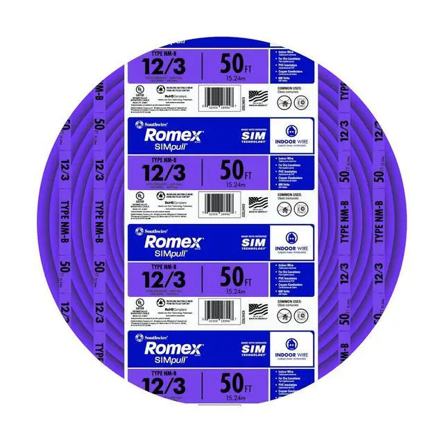 Romex Type NM-B Copper Building Wire is commonly applied in residential building wiring as a branch circuit for switches and outlets