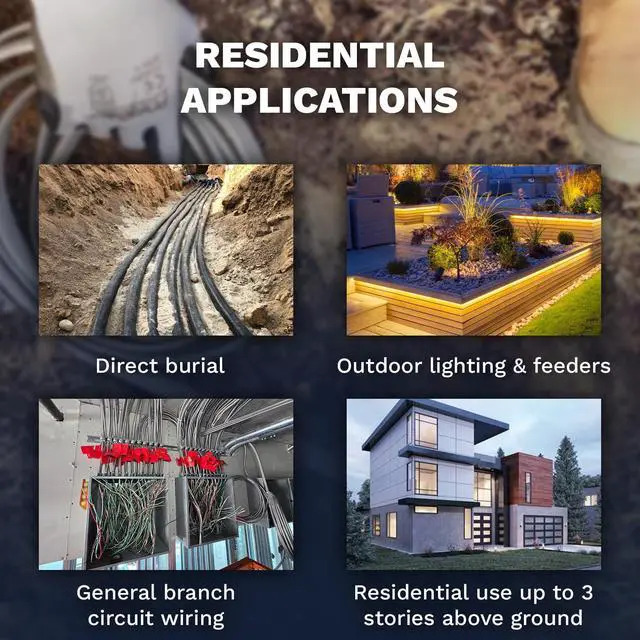 Direct Burial Rated for Easy Installation Ideal for direct burial applications, this cable eliminates the need for conduit, allowing for faster and more convenient installation in residential, commercial, and industrial outdoor wiring projects.