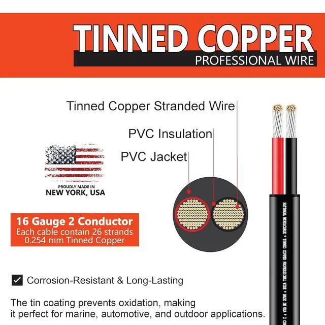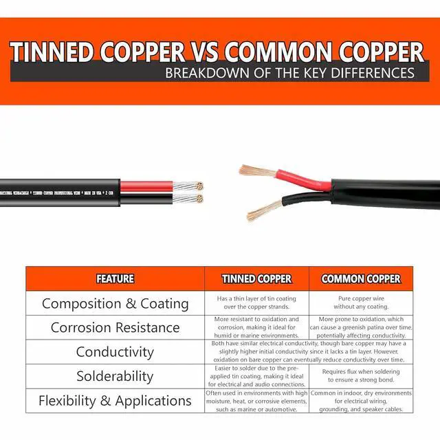 Superior Signal & Power Transfer Low-resistance tinned copper delivers clear, distortion-free signals for audiophile-grade sound and high-efficiency power transmission.