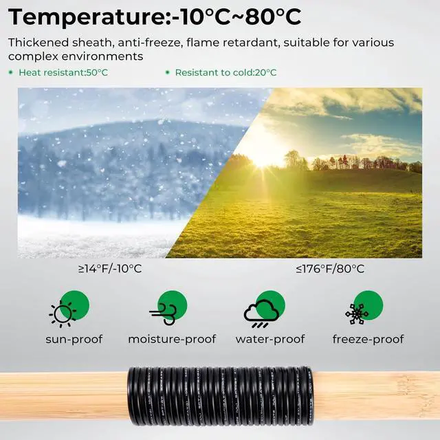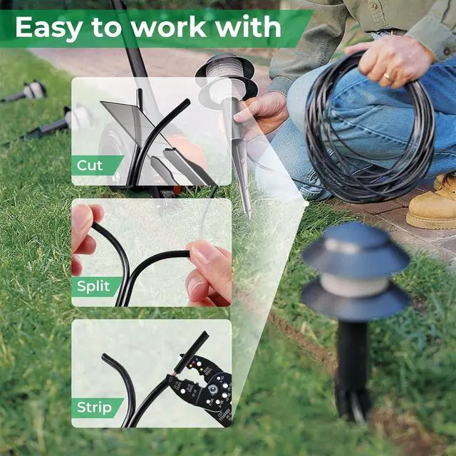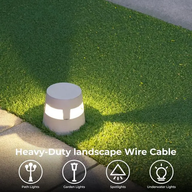 Direct burial & durable: 14awg copper wire is insulated jacket with high quality PVC direct burial material, excellent Waterproof, dust and dirt resistant, rated for direct burial for low voltage garden lights, withstands prolonged sun exposure