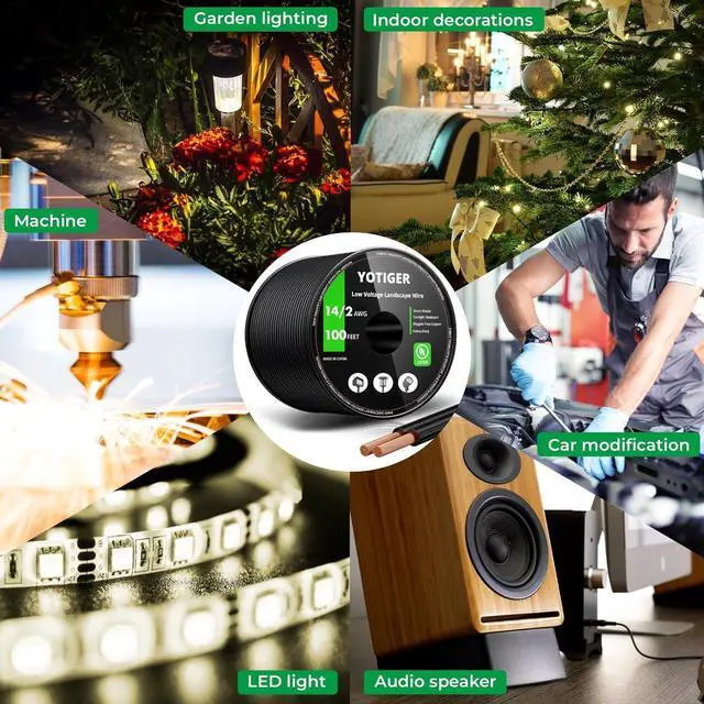 Application: yotiger 14 gauge wire are perfect for low voltage outdoor uses such as landscape lights, accent lights, path lights, spotlights, garden accent lighting, and even underwater lights; you can also use them for home or car audio installation