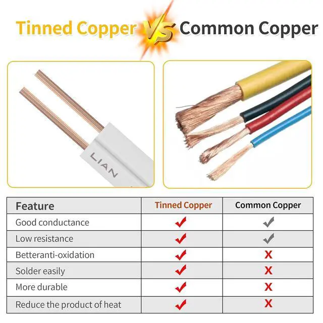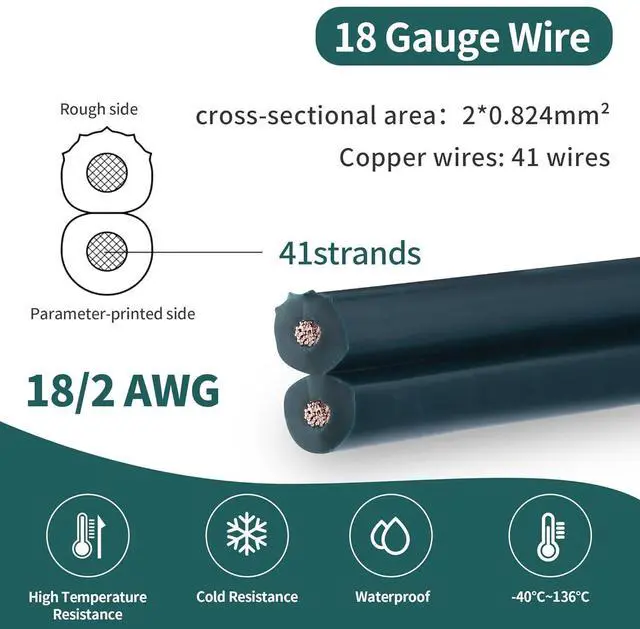 High Quality & Safety: Made of copper strands with PVC VW-1 material coating, 41 tiny lines twined together, the cross-sectional area is 2 x 0.824 mm². The wire is flame retardant, anti-aging, acid and alkali resistant, and moisture resistant