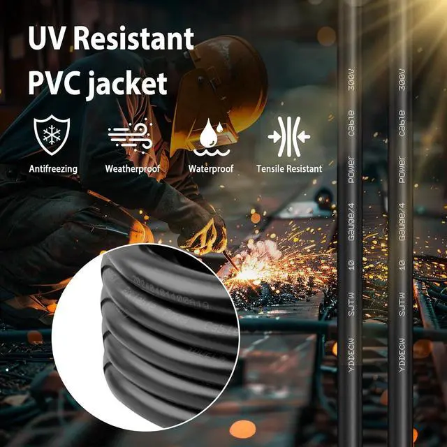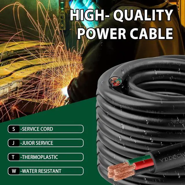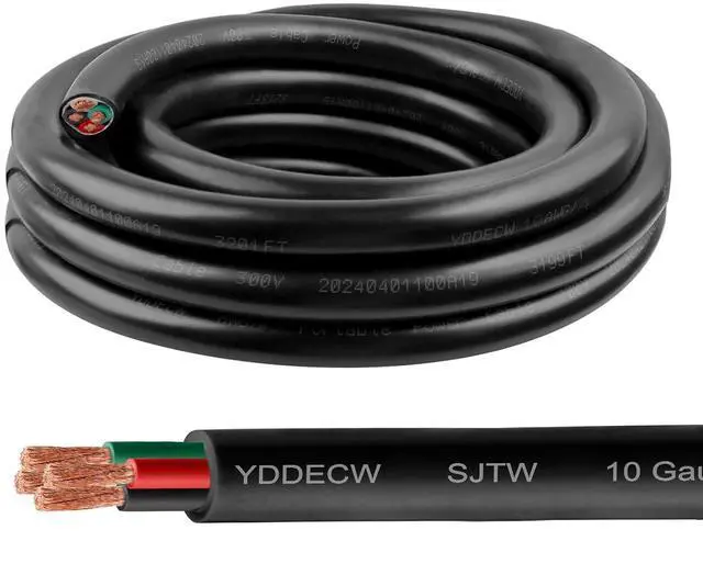 Outdoor Conditions: Our Heavy Duty 10 AWG 300V SJTW (Service, Thermoplastic, and Water Resistant) cable (10 FT - 4 Conductor) is the first choice for industrial, commercial, and outdoor uses. With its insulated design and Anti-ultraviolet PVC jacket, ensuring reliability in even the harsh environments (-40 to 105). "