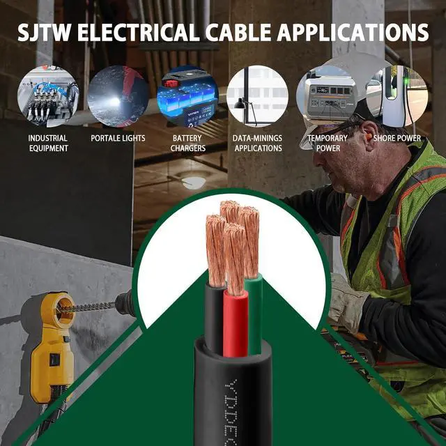 Conductor) typically include: distributing power in industrial settings, providing power for portable power and lighting at construction sites, events, and for emergency services, powering outdoor equipment like pumps, generators, and lighting systems, supplying temporary power needs for events and shows, connecting heavy-duty electrical equipment such as motors and transformers, and serving for marine applications by linking electrical systems on ships and boats. "