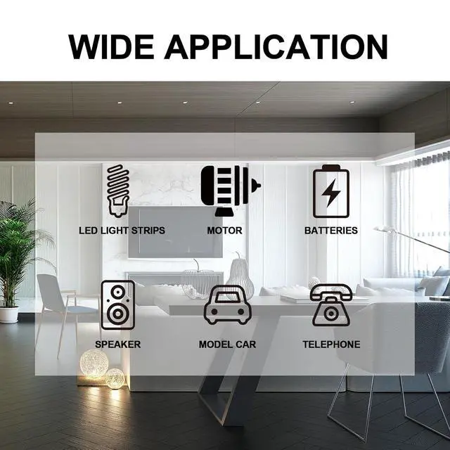 WIDE APPLICATION - Widely used in lamps and lanterns, LED strips, automobiles, batteries, electronic and electrical equipment, transformers caravans, landscape lighting, stereo speakers, monitoring, inverters, outdoor lighting, car models, etc.