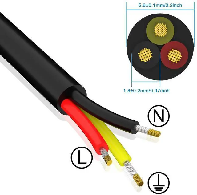 HIGH QUALITY PVC - ROHS certified PVC jacket insulation protects 3-pin high-precision oxygen-free copper from wear and oxidation. The exterior of the cable is sheathed in 100p hardness PVC, making the wire softer and easier to route, while also being flame retardant and age resistant, enabling the cable to be used in harsh environments.