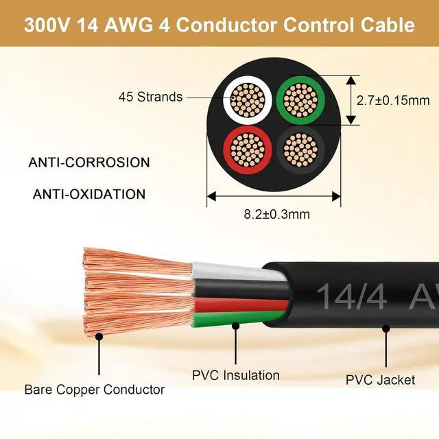 GREAT CONDUCTIVITY -- MOOKEERF 14/4 AWG control cable is built with stranded pure copper (OFC) conductor, which has better conductivity, lower resistance and corrosion resistance than copper clad aluminium, providing maximum conductivity and reliability.