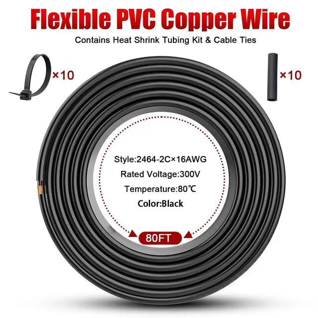 Durable & Weather-ResistantEncased in premium PVC insulation, the wires withstand harsh environments with flame-retardant (VW-1 rating), anti-aging, and moisture-proof properties. Rated for temperatures from -4°F to 176°F (-20°C to 80°C), they excel in automotive, marine, and outdoor applications.