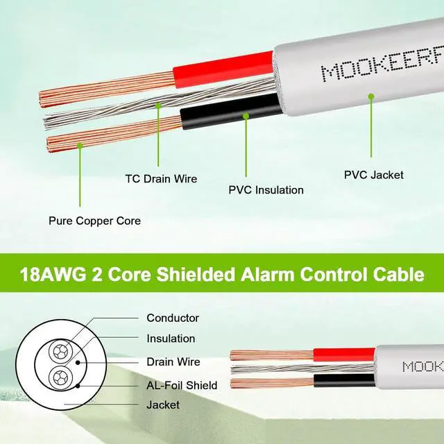 HIGH CONDUCTIVITY -- MOOKEERF 18 AWG shielded wire is built with stranded pure copper conductor, which has better conductivity, lower resistance and corrosion resistance than CCA (copper clad aluminium), providing maximum conductivity and reliability to ensure that your fire alarm systems run smoothly.
