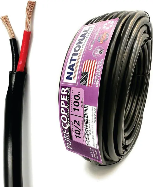 NATIONAL Wire & Cable 10 AWG 2-Conductor Premium Copper Wire, 100 ft, Stranded | Made in USA, Heavy-Duty Flexible Jacket | Automotive, Solar, Battery, Indoor and Outdoor Use