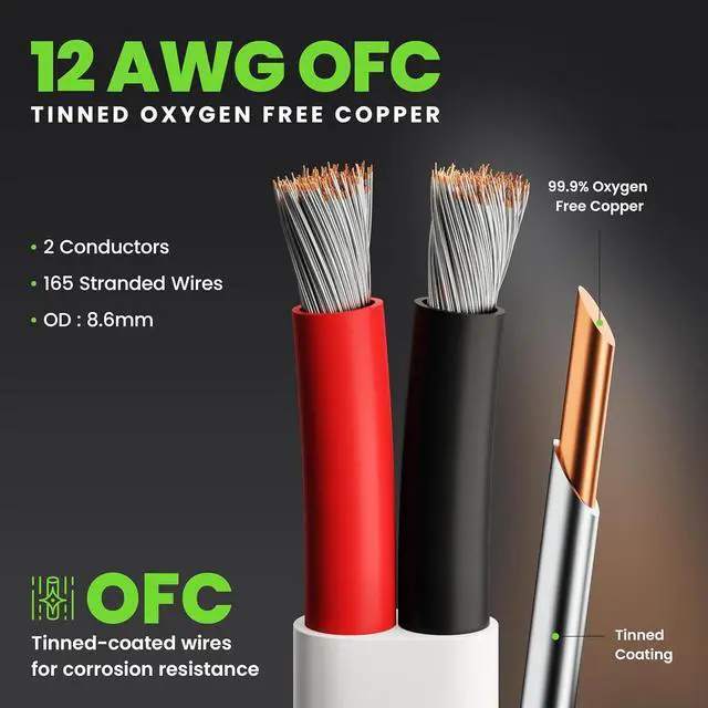 THICK MARINE GAUGE WIRE - Tinned Wire 99.9 % Oxygen Free Copper 2 Conductors (2C) with Red-Black internal cable color for easy polarity identification. External pvc jacket color is white cable lining. Insulation resists salt water, battery acid, oil, gasoline, heat, abrasion, and UV resistant radiation.