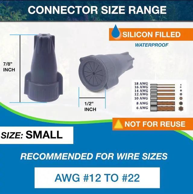 EASY TO INSALL: The connector can be applied to connect wires without soldering. No electrical tape or tools are required. Just slightly pre-twist wires and gently twist on connector until tight.