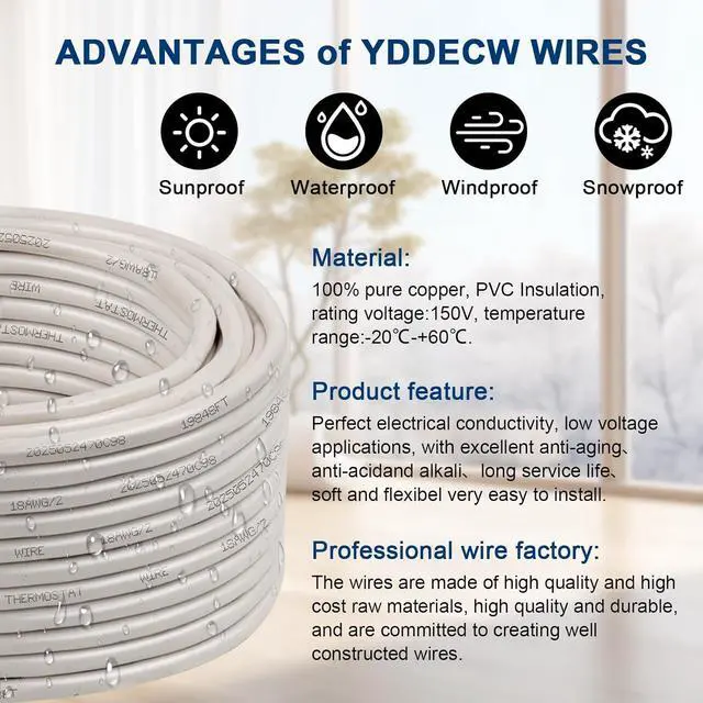 [Well Built Structure] - The inner conductor of this Thermostat Cable is made of solid pure copper, the insulator is made of premium PVC, it could be better in resist oxidation and corrosion, provides maximum conductivity.