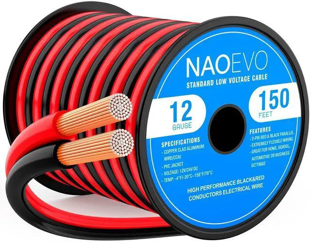 NAOEVO Low Voltage Wire: 12/2 gauge black and red speaker wire is ideal for low voltage applications such as 12V/24V DC circuit connections, home or car speakers, home appliances, single color LED light strip, lamps, automotive, boat ect.