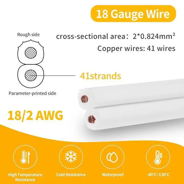 Specification: SPT-1 18/2 Gauge Wire and 2 pairs of zip plugs. 41 tiny lines twined together, the cross-sectional area is 2 x 0.824 mm².