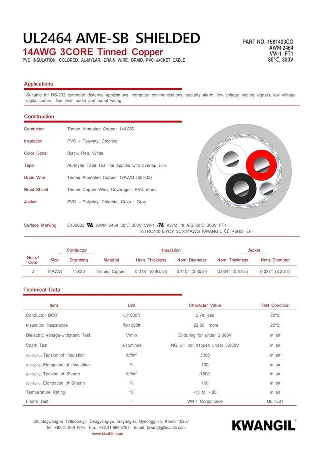 MADE IN KOREA: Since 1984, KWANGIL has been a successful manufacturer of wire and cable products in Korea. KWANGIL has provided the industrial, robotics, factory automation, aerospace, shipbuilding, transportation, telecommunications, and medical industries, as well as distributors, the government, manufacturers and military with all their cable products.