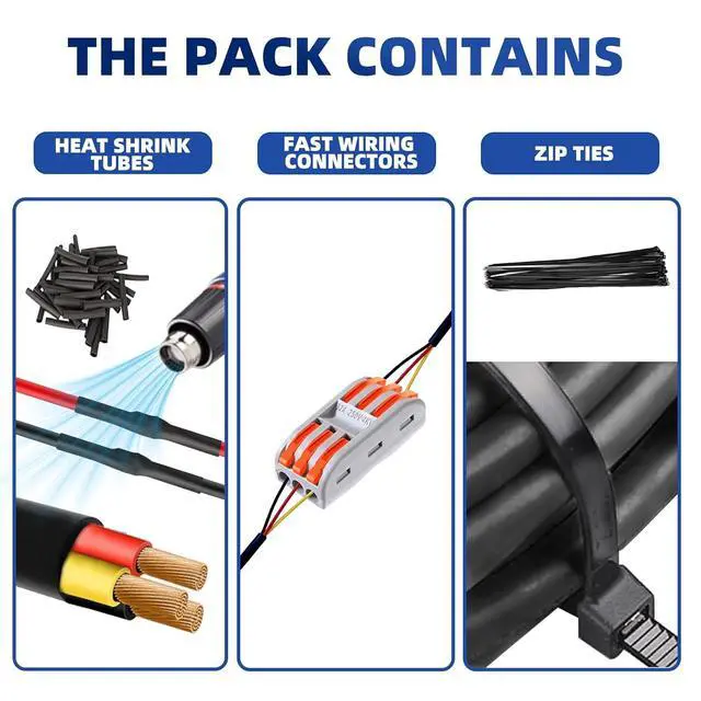 Additonally accessories: In this package, we offer additionally 18 pcs heat shrink tubes, 4 pcs zip ties and 1 pc quick wiring connectors for your convenience.