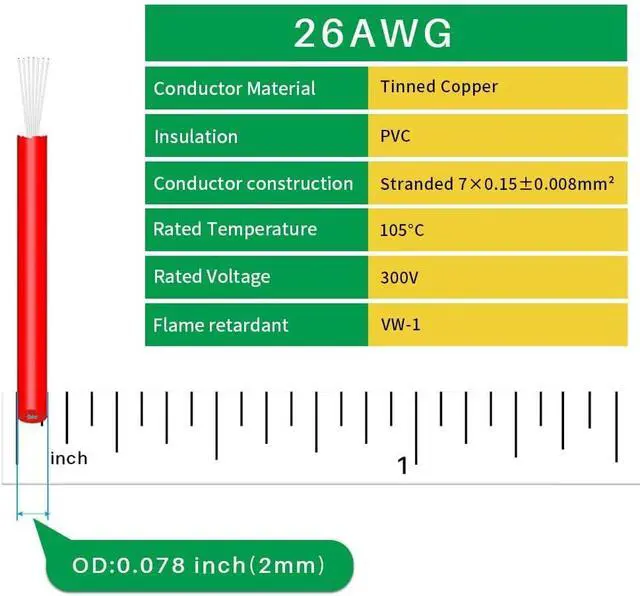 AWG Hook-Up Wire: Stranded tinned copper conductor with a PVC sheath.