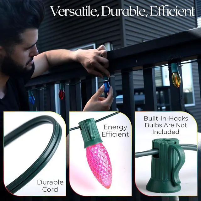 Energy Efficient - Our C7 light cord is compatible with LED bulbs for brighter, more colorful lighting while saving energy and lowering electricity costs.