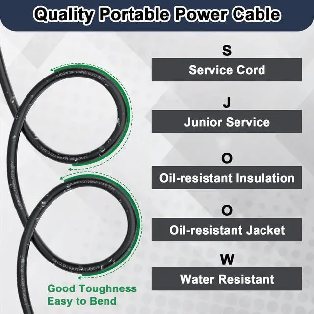 Reliable: The 12/3 AWG 300V SJOOW cable has obtained UL62 certification, it features strong insulation and is covered with a CPE rubber jacket, providing protection against oil, acid, water, and chemical corrosion. It can operate stably in extreme temperatures ranging from - 40°C to 105°C, being durable in standing out as an excellent choice for power transmission. The heavy duty 12 gauge wire is specifically designed for complex industrial, commercial, and outdoor environments.