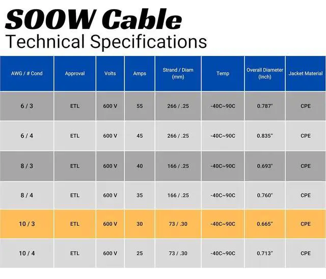 APPLICATIONS: portable power, electric vehicle chargers, extension cords, heavy equipment, construction machinery, motor leads, welding leads, portable lighting, battery chargers, shallow water immersion, mining environments, and applications where a rugged, heavy duty flexible multi-conductor cable is required.