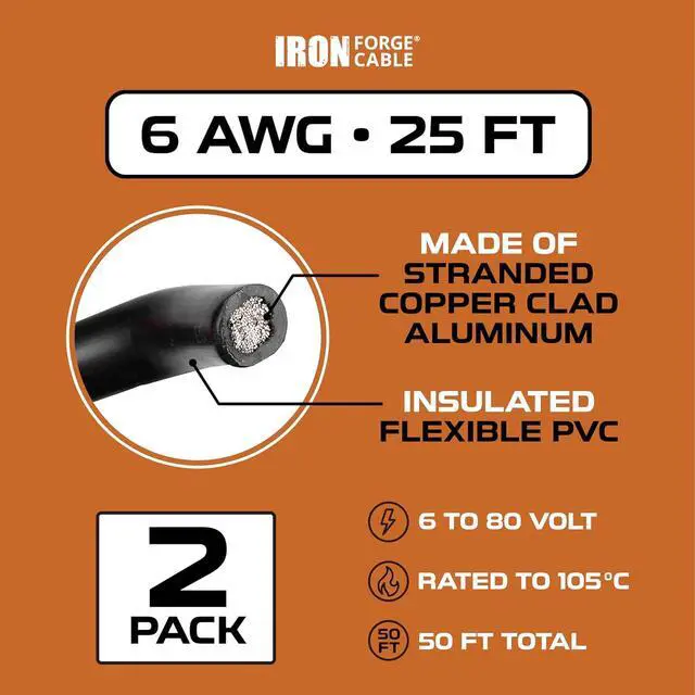 Versatile Wires for Multiple Applications The 6 gauge copper wire 25 ft is Ideal as welding wire, 6 gauge battery cable, or for use in car audio systems, robotics, solar panel setups, and other DC-powered projects.