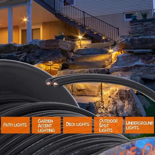 Low Voltage Applicabilty Lighting cable is suitable for low voltage outdoor uses such as accent lights, path lights, spotlights, garden accessories, outdoor speaker, solar panel and soon