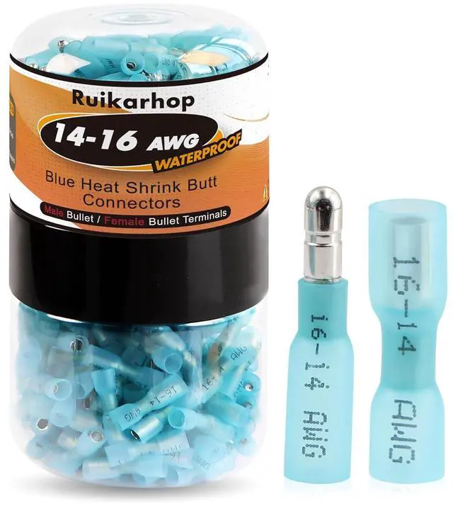 Size14-16AWG (Blue) Waterproof Male and Female bullet connectors.