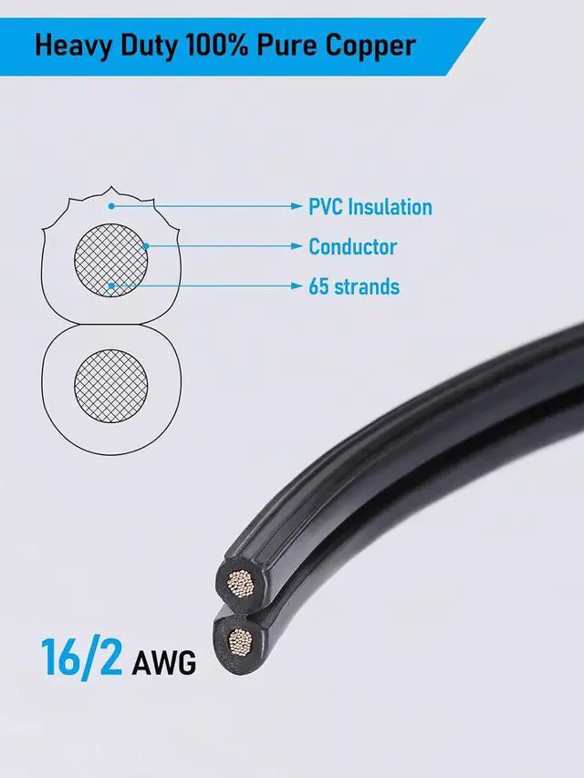 Wire Specification: The 100ft, 16-gauge outdoor landscape cable can fully satisfy your needs for outdoor landscape lighting