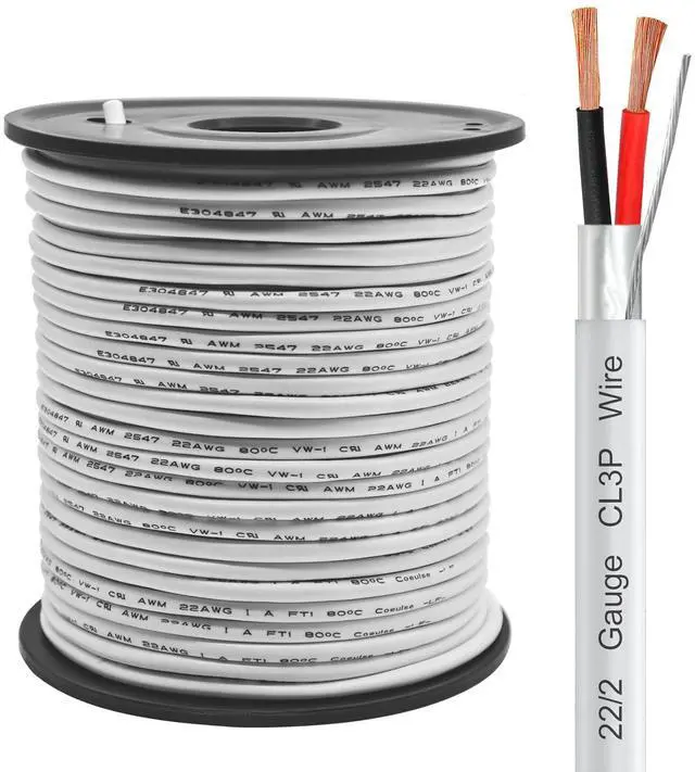22/2 Shielded Wire 50FT CL3P Jacket Pure Copper Wire, Spool 22 Gauge 2 Conductor Stranded Plenum Cable for Security Alarm Access Control Sound