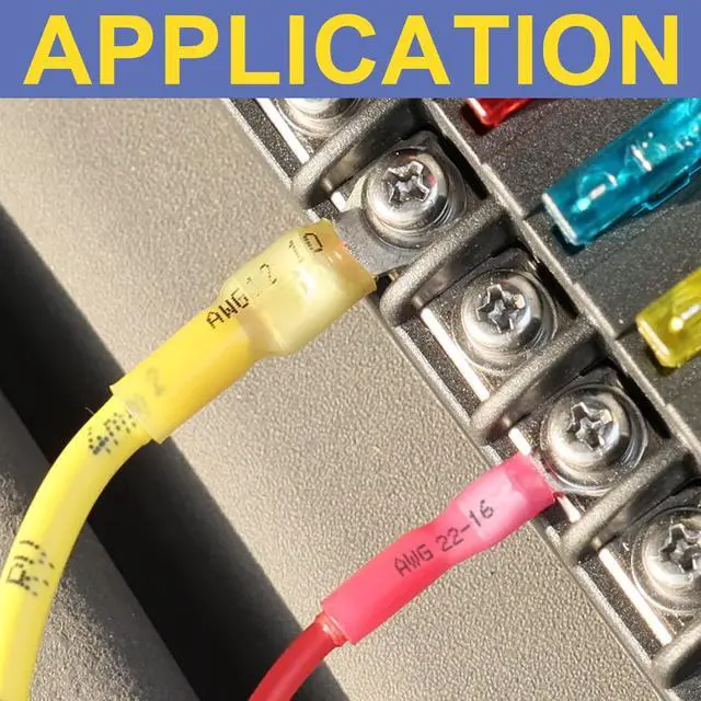 Flexible Application: The 100pcs heat shrink ring terminals work for wire gauge AWG 16-14 #10. For motorcycles, automobiles, Tractors, boats, etc