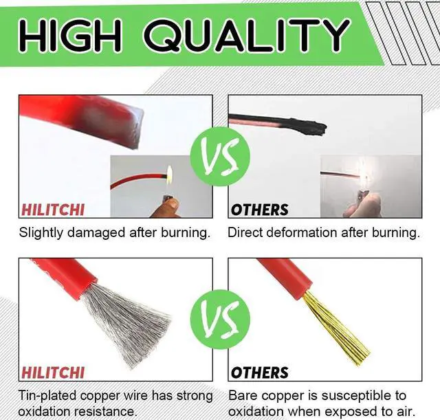 Hilitchi 10 Gauge 12Feet Silicone Wire High Temperature Resistant Super Soft Flexible Silicone Wire [6ft Red and 6ft Black] (10 AWG)
