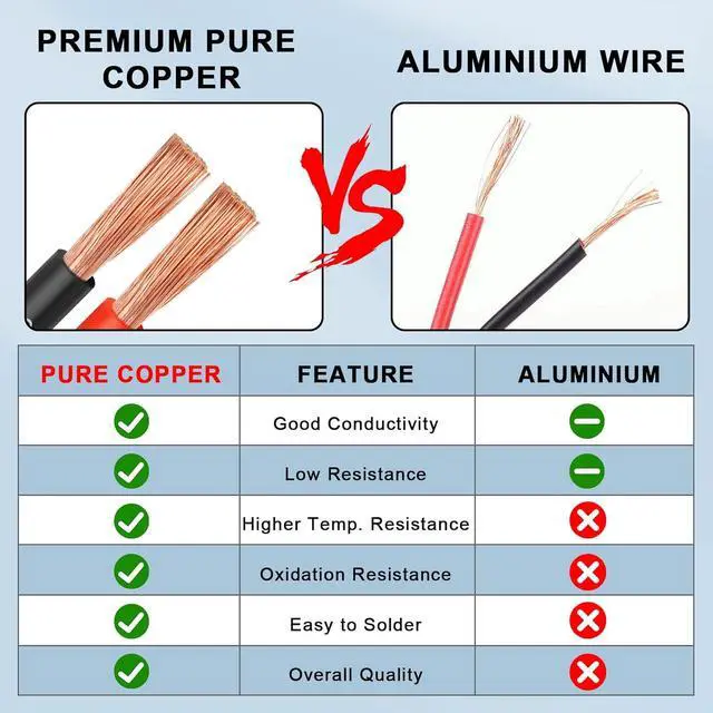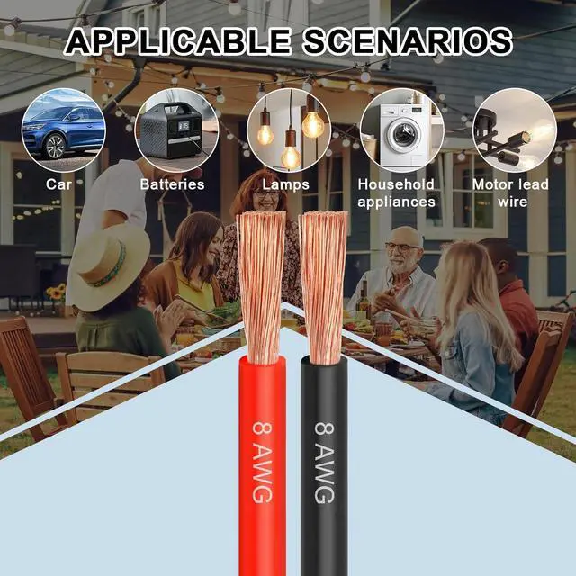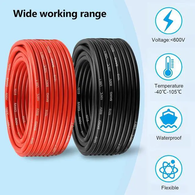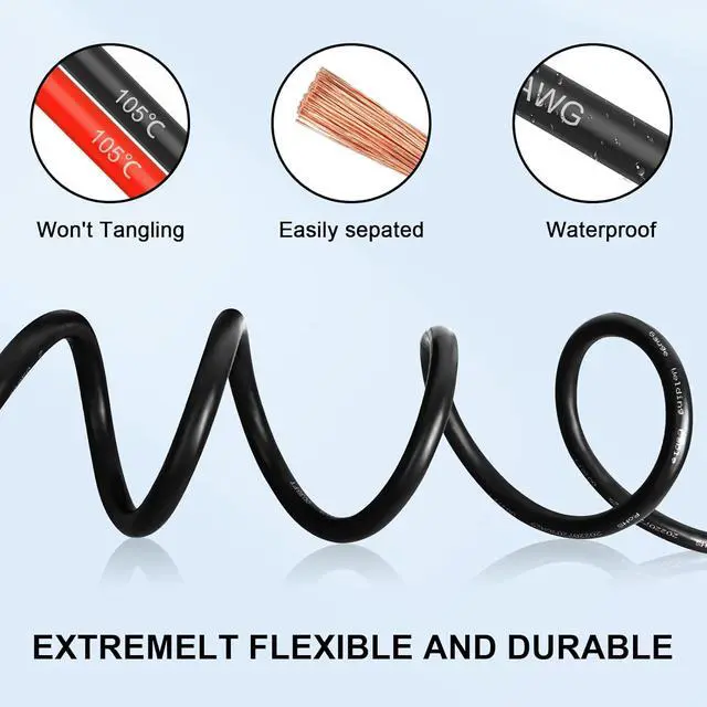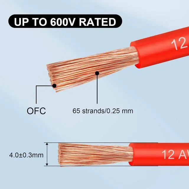 Material: 12 AWG PVC High-purity oxygen-free Copper wire, Black and Red each color 25 Feet, Diameter: 4± 0.3 mm.