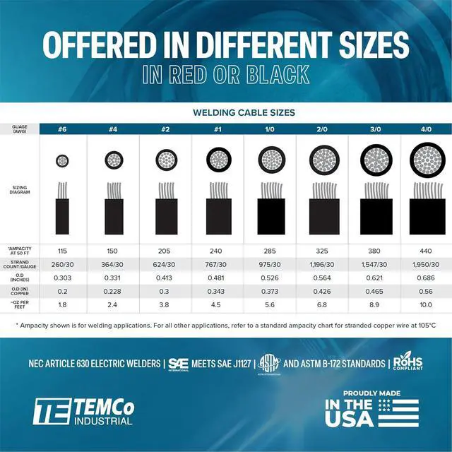 In addition to welding applications, TEMCo Easy-Flex can be used for battery and starter cables for car/truck/diesel, car audio, solar, RV/camper/van DC systems, winch power leads, battery banks and much more.