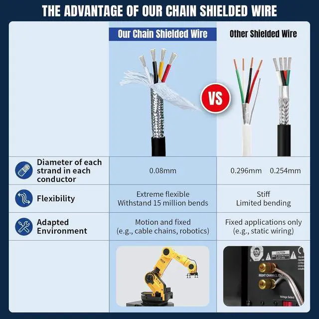 Extreme flexible301pcs strands, diameter 0.08 mm tinned copper strand in every conductor, withstand more than 15 million bends, suitable for chain system.