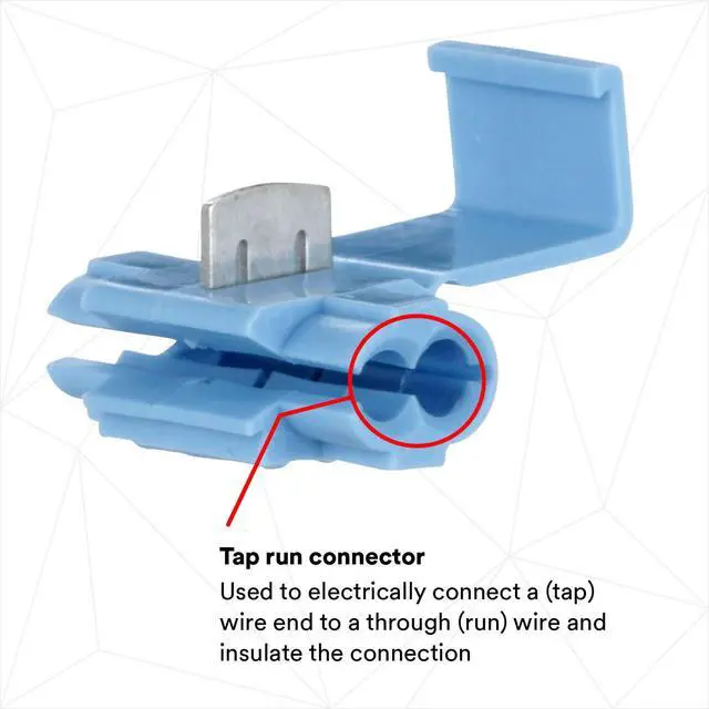 TAP RUN CONNECTOR: Used to electrically connect a (tap) wire end to a through (run) wire and insulate the connection.