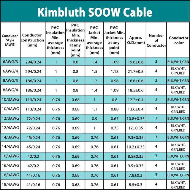 What You Get & Important Notes: You will receive one 200 ft long, 8.5 mm diameter SOOW cord (18 AWG, 4-conductor) made with stranded pure copper.