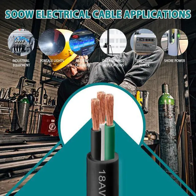 Extreme Conditions: Engineered for industrial, commercial, and outdoor use, our heavy-duty 18 AWG 600V SOOW cable offers rugged durability. Its oil, water, and acid-resistant PVC jacket and robust insulation withstand harsh chemicals and environments (-40 to 90), ensuring reliable performance.