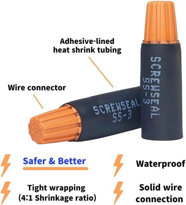 Distinction 2. (Safer): We produce a waterproof wire connector with an integrative twist-on wire connector and adhesive-lined shrink tubing. Shrinks tubing and leaked silicon cover wires, then it has extra waterproof effects.